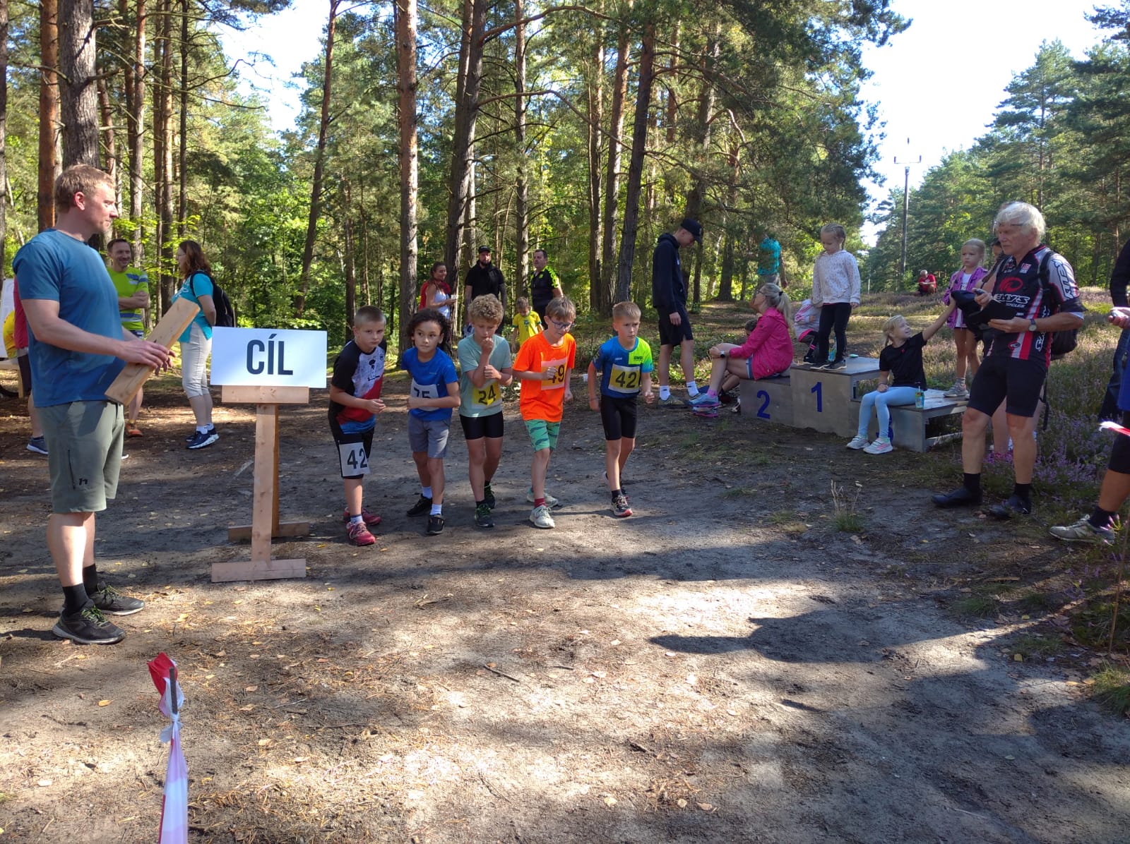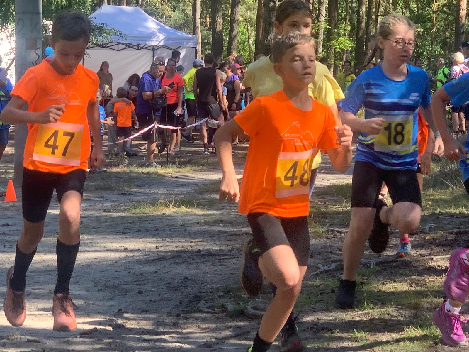 Děti však čekaly obligátní trasy na kratší vzdálenost a hned ze začátku do toho všichni pořádně šlápli! Vašík Fořt, jako nejmladší z naší ekipy, si doběhl pro bramborovou medaili a statečně pak bojoval se slzičkami. Ještě ho čeká mnoho podobných závodů, ale jistě brzy stane na stupních vítězů! Nejmladší z děvčat Anička Horčičková, běžela jako velká profesionálka a skončila na 1. místě. Dál to šlo ráz na ráz - Fandu Fořta bolela nožka, přesto se nechal namotivovat a stoupnul si na startovní čáru. A dobře udělal! Doběhl jako druhý. Amálka Horčičková běžela s Terkou a holky doběhly na prvním a třetím místě - obě tedy dosáhly na stupně vítězů! Amálka se potom ještě s děvčaty Smrkovskými a sestrou Aničkou, postavila na trať závodu mladších žákyň, kde - v konkurenci starších dívek - doběhla na skvělém 3. místě! Bětuška v krásném finiši předběhla dívku před sebou a doběhla na 4. místě, Adélka na 6. místě a Anička osmá.