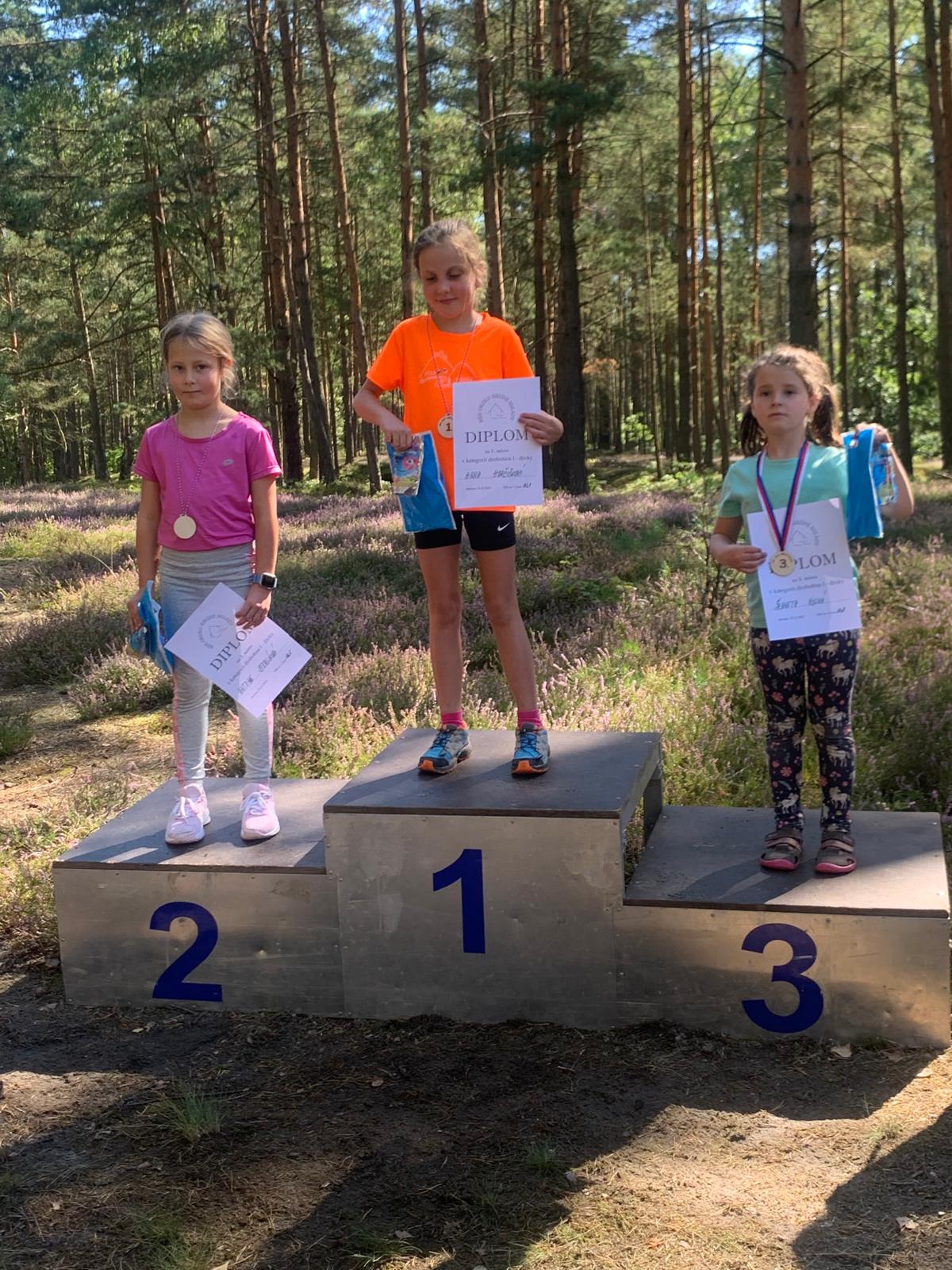 Adélka s Bětuškou a Kačkou závodily ještě ve své kategorii. Bětuška vyhrála, Adélka doběhala za ní a Kačka Štorkánová pátá. Super, holky!